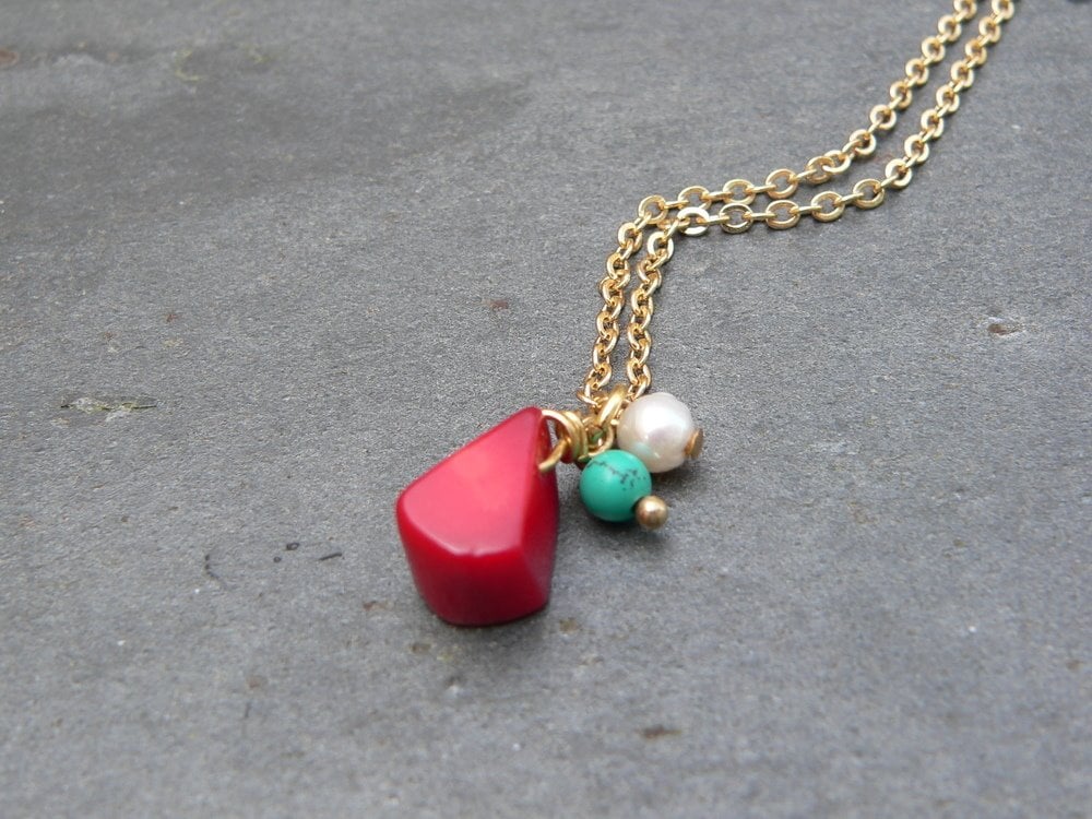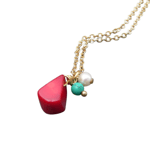 Colgante creado con una gota de coral natural, turquesa y perla.
