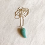 Este colgante lo creamos con una amazonita natural tallada en forma de ala. Simboliza la libertad que nos permite ser quienes somos en todo momento.