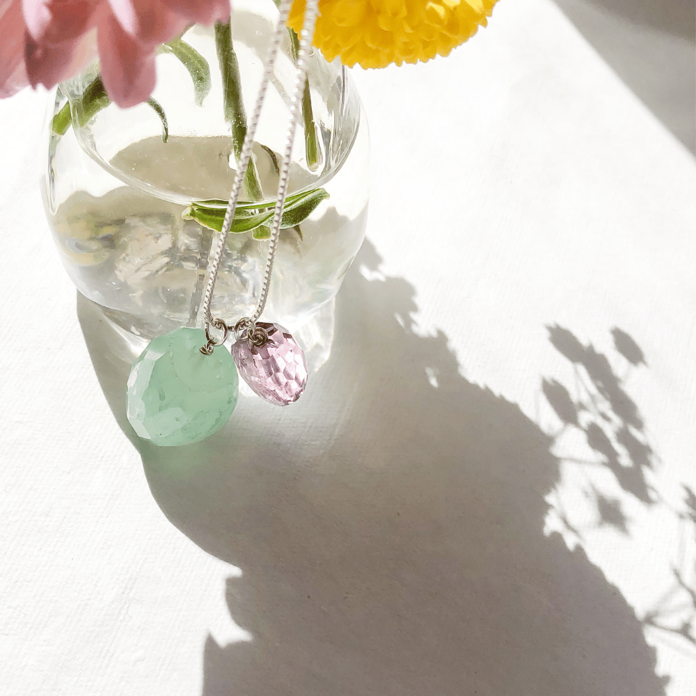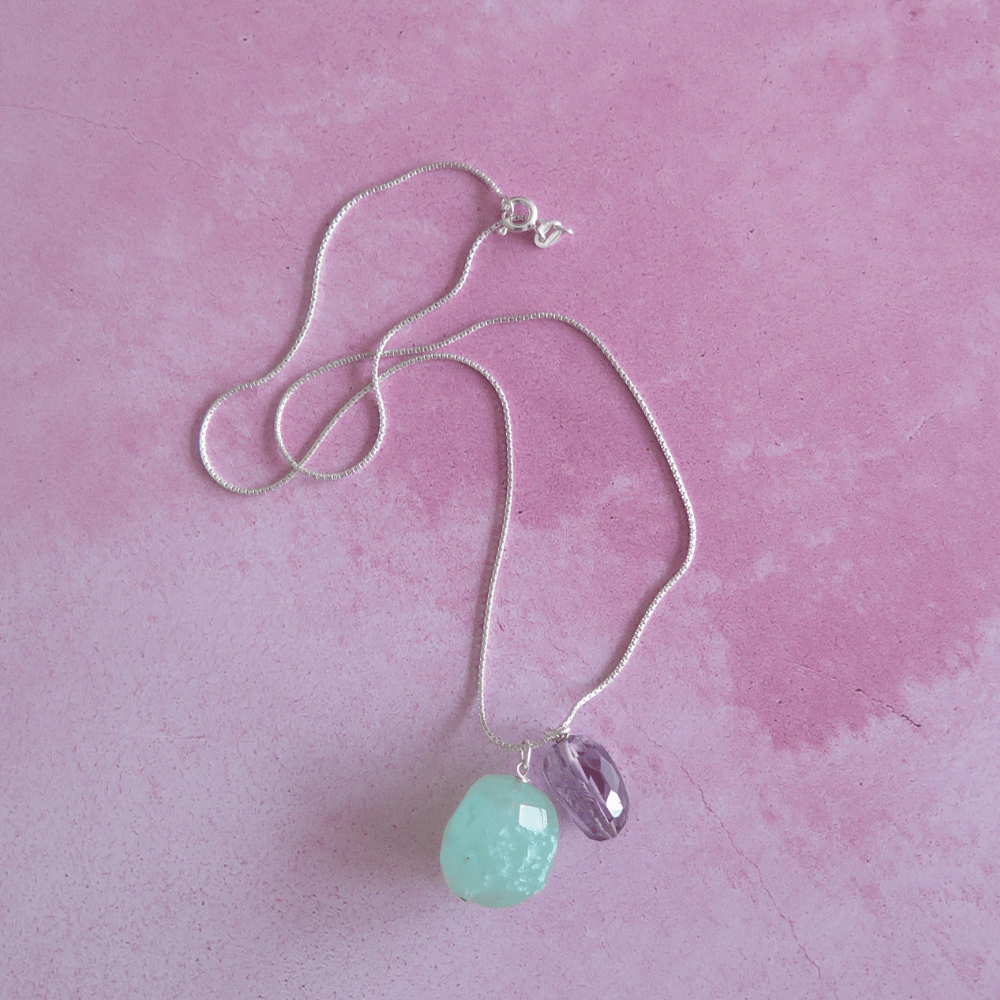 Inspirado en el campo del sur de Francia, entre viñedos y extensas plantaciones de lavanda y los ramilletes de estas que adornan cada rinconcito de las casas allí. Creado con calcedonia y amatista.