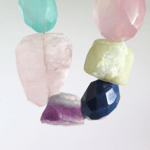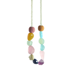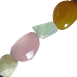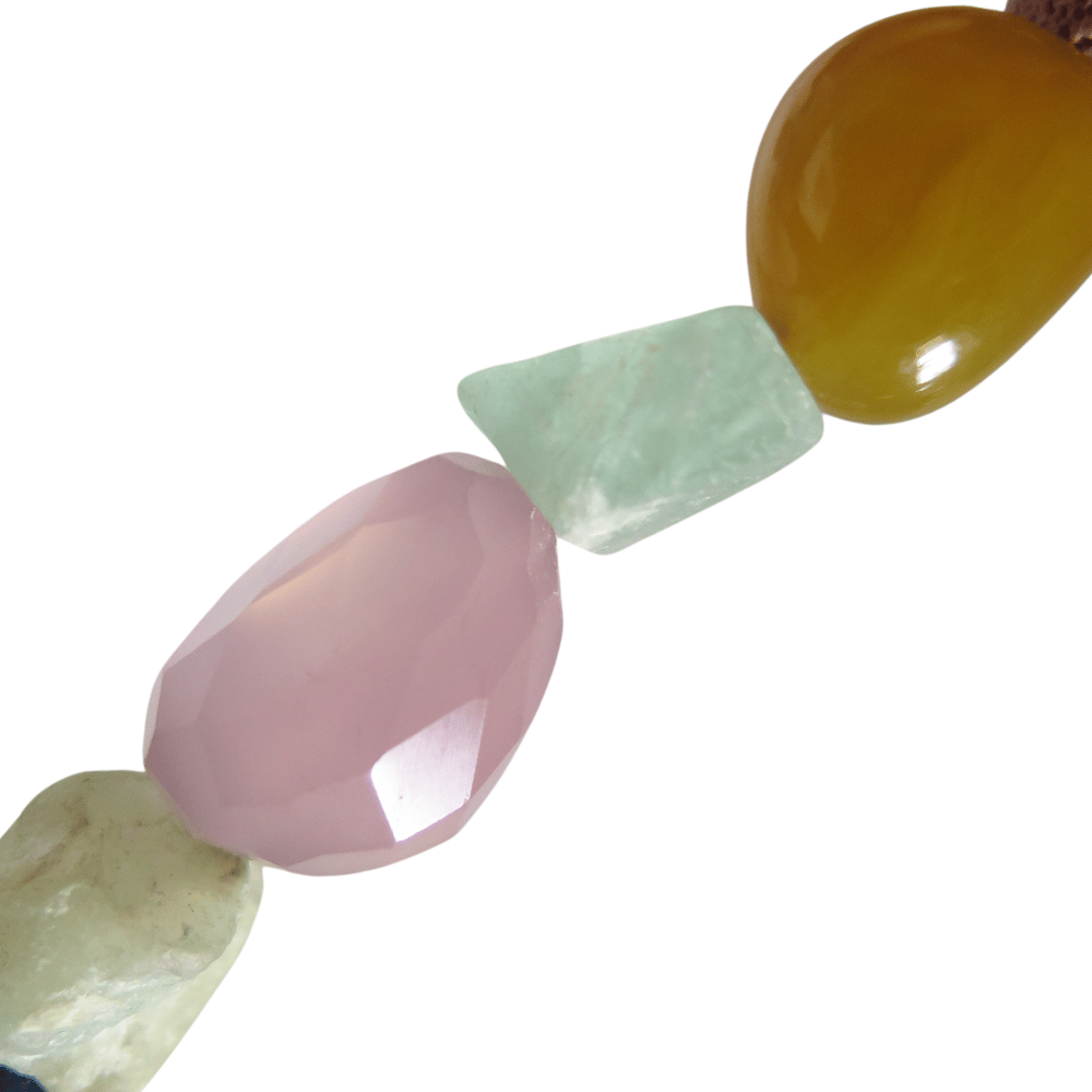 Collar creado con amazonita pequeña y gemas de mayor tamaño: calcedonia en diferentes colores, fluorita, cuarzo rosa.