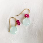 Pendientes minimalistas creados con calcedonia menta y detalles de jade fresa.
