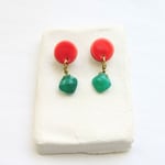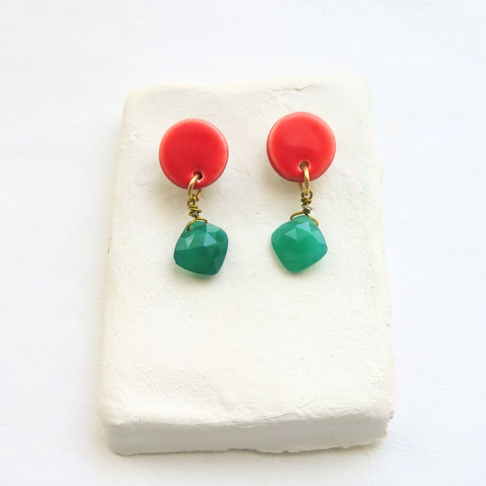 Pendientes en cierre cerámico creado y esmaltado a mano acompañado de una gota de calcedonia en verde intenso.