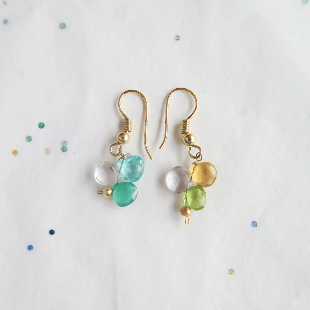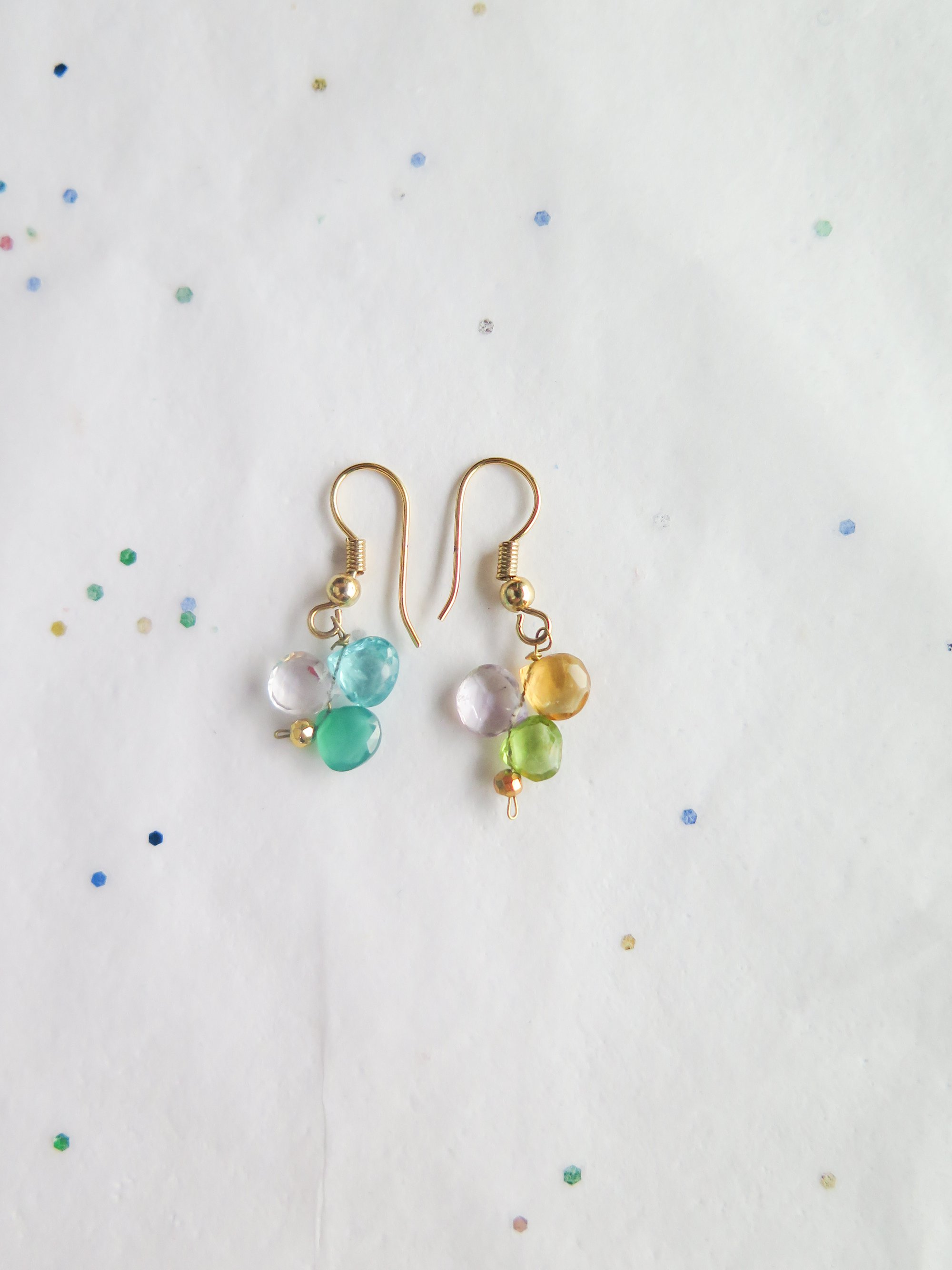 Pendientes creados en otoño con gotas de gemas semipreciosas en cierre de gancho.